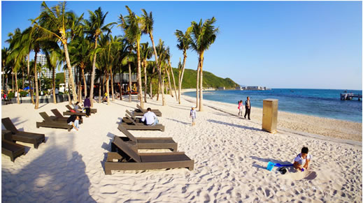 亞龍灣位于市區(qū)以東30公里,1992年經(jīng)國務(wù)院批準為國家級旅游度假區(qū),享有“天下第一灣”之美譽,海灣近10公里,海水能見度達20米以上,灣內(nèi)風(fēng)平浪靜,海水湛藍。亞龍灣屬典型的低緯度熱帶季風(fēng)海洋性氣候,全年長夏無冬,陽光充足,碧海、沙灘、空氣、陽光和綠色融為一體,海內(nèi)外游客盛贊“不是夏威夷,勝似夏威夷。”