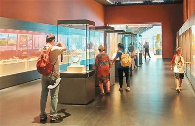 游客在位于遼寧凌源的牛河梁遺址博物館參觀。